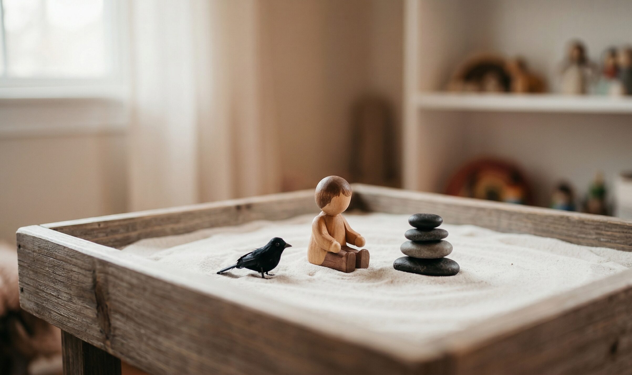 visual way. Sand tray therapy tends to be quieter and more meditative than traditional play therapy, making it especially helpful for children who benefit from structure, symbolism, and a calm, contained space for processing emotions.